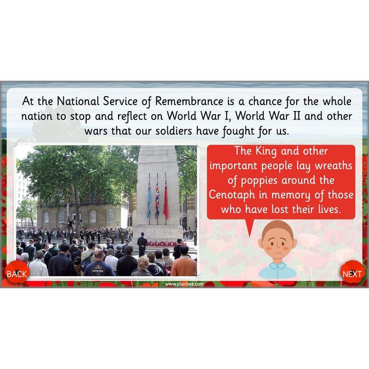 The final lesson in this series encourages your children to think about why it is important to remember events such as WWI and WWII, even though they happened a long time ago. It explains that Remembrance Day is something that is commemorated around the world, as well as nationally and locally.