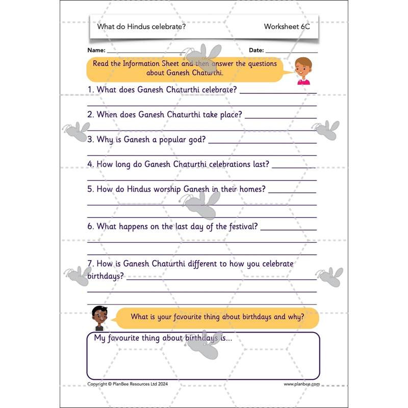 The final lesson in this series looks at the popular Hindu festival of Ganesh Chaturthi. This festival celebrates the birthday of the elephant-headed god, Ganesh. Your class will find out what happens during the Ganesh Chaturthi celebrations and think about how this birthday is different or similar to their own birthday celebrations.