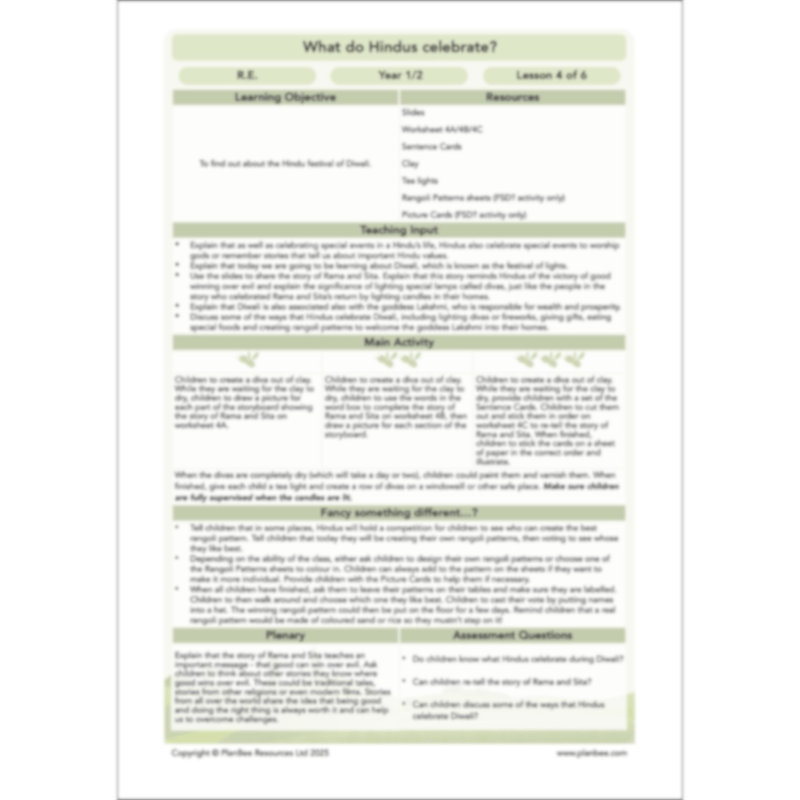 This engaging series of RE lessons for KS1 comes with lesson plans, a choice of learning activities, differentiated worksheets, slides, and a whole range of other teaching resources.