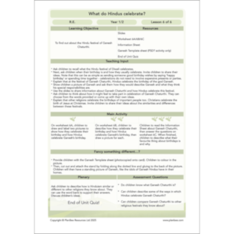 Find out about different Hindu celebrations in this complete 'What do Hindus celebrate?' scheme of work for KS1. Your class will learn about Hindu beliefs, childhood celebrations, weddings, Diwali, Raksha Bandhan and Ganesh Chaturthi.