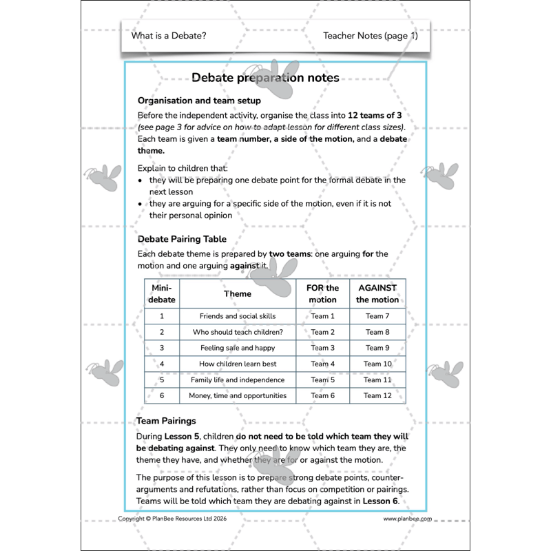 In this final lesson, children take part in a class debate using the debate points they prepared in the previous lesson.