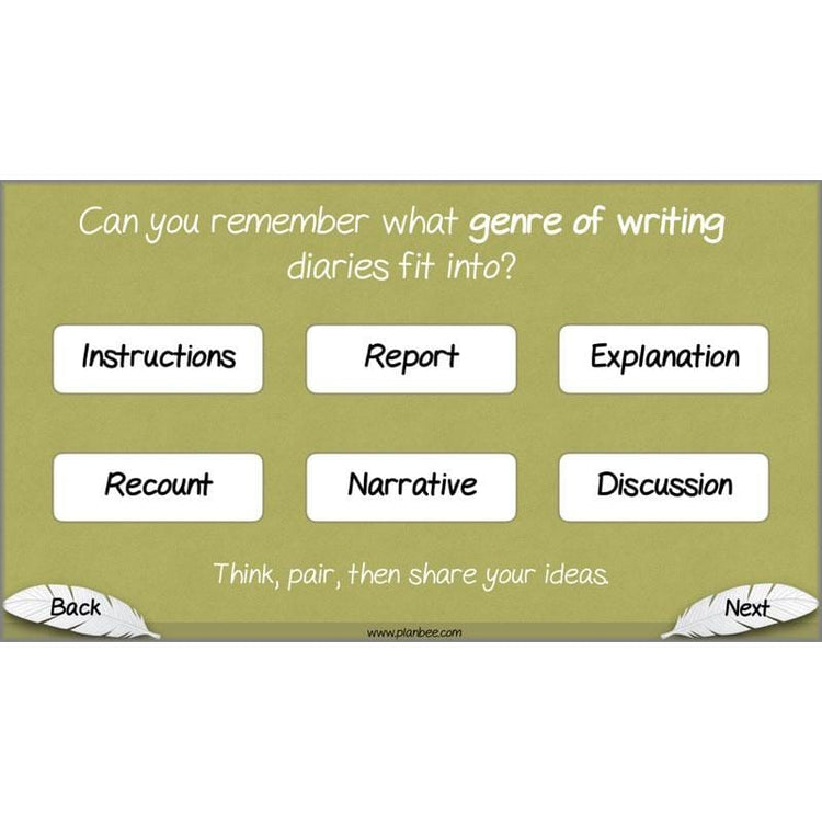 This Features of a Diary KS2 lesson will refresh your Year 5 class's knowledge and understanding of this particular genre of writing.