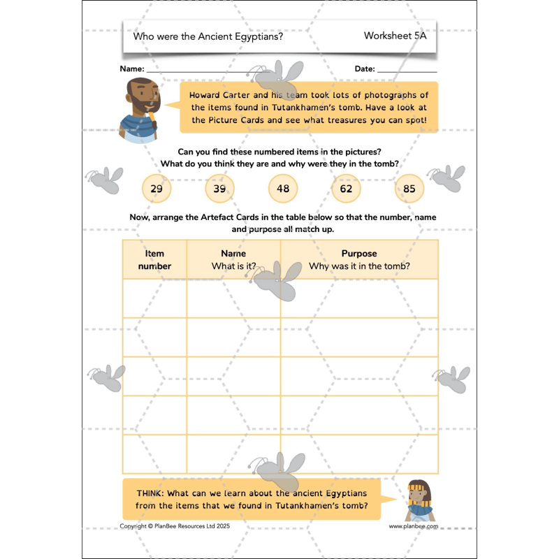 They’ll have the chance to examine photographs and artefacts found inside the tomb and consider what these objects reveal about life, death and beliefs in ancient Egyptian society. Children will also be encouraged to think critically as they explore the difference between an archaeologist and a tomb robber, sparking discussions about ethics, history and the value of cultural heritage.