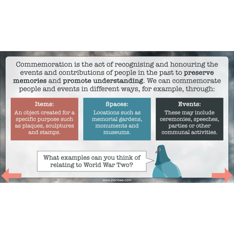 In this lesson, children will learn about the different ways we can commemorate the past before researching and designing a space or product that commemorates an individual, group or event associated with World War Two.