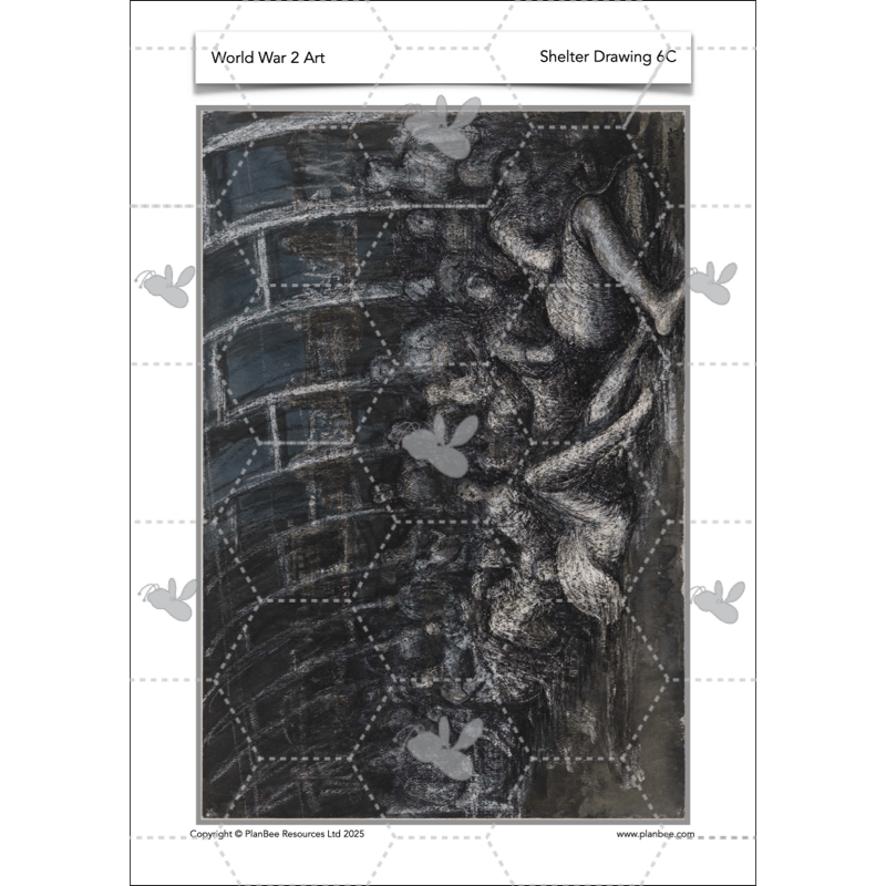Bring Henry Moore’s Shelter Drawings to life in your classroom with this final lesson, where pupils recreate their own powerful shelter scene using techniques explored throughout the unit. Inspired by Moore’s emotional depictions of people sheltering in underground tunnels during the Blitz, children will draw from prior sketchbook studies to create their final piece.