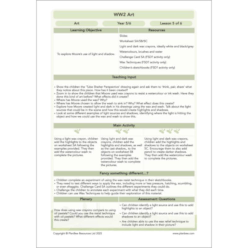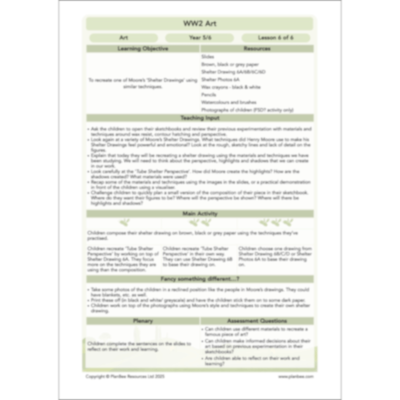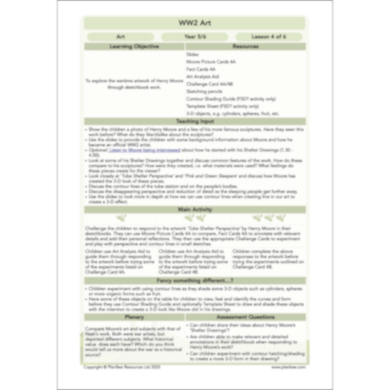 Each of these downloadable KS2 WW2 Art lessons comes complete with a detailed lesson plan featuring differentiated activities, an interactive slideshow and printable resources to support children in their learning.