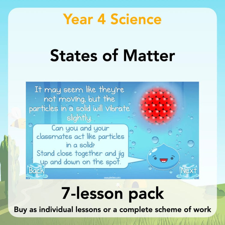 These Year 4 States of Matter Science lessons for KS2 are the perfect way to teach your class about the differences between solids, liquids and gases, and how different materials can change state. Your Year 4 class will have plenty of opportunities to undertake practical experiments to help them understand the processes of evaporation and condensation, and the water cycle, as well as having the chance to express their understanding in a variety of ways.